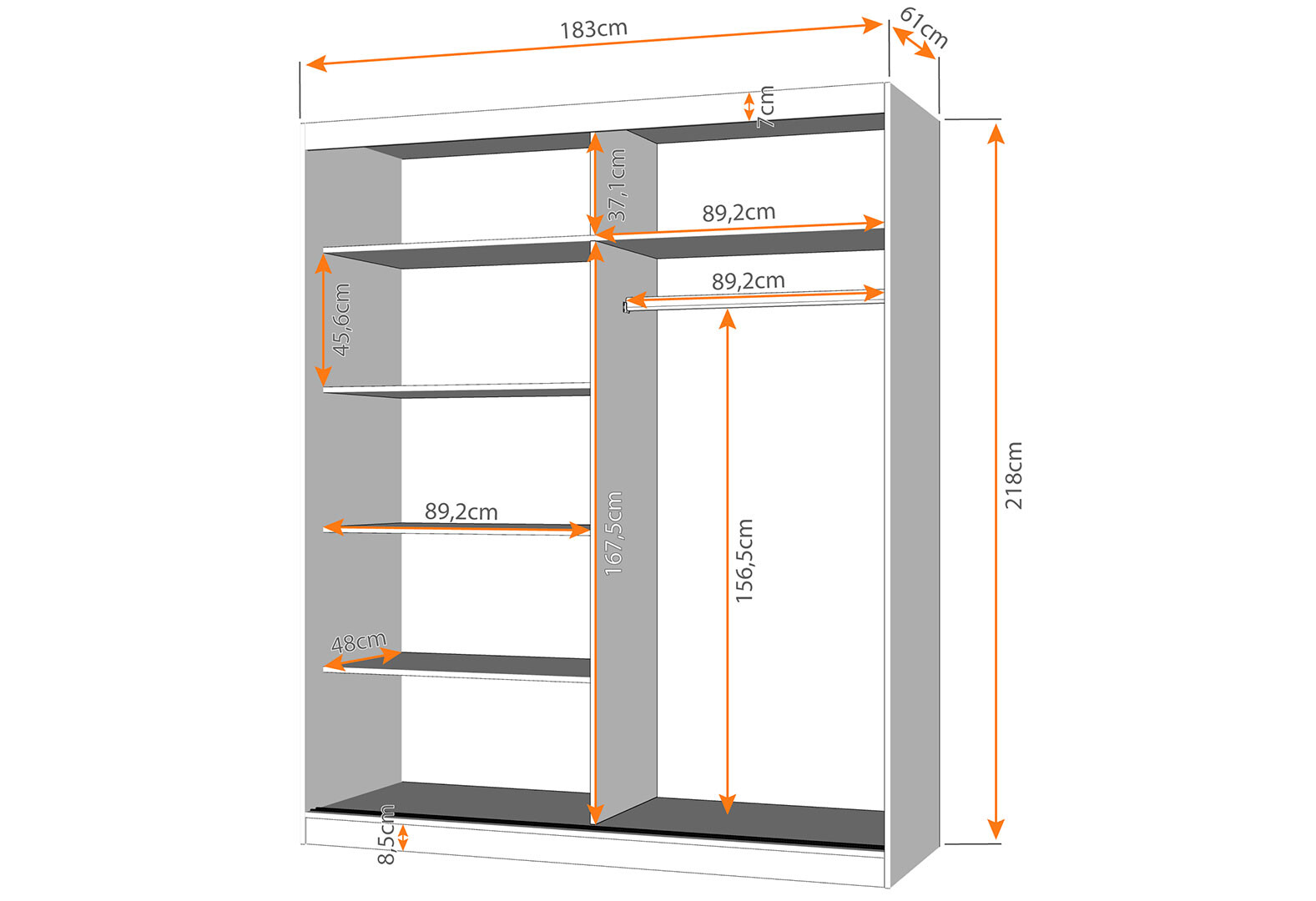 Skriňa Multi 31, 183 grafit + fasáda čierny lesk + zrkadlo