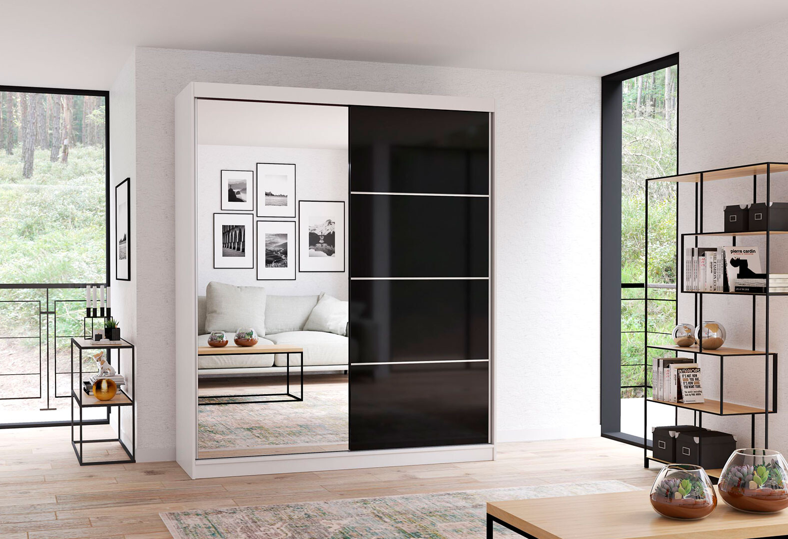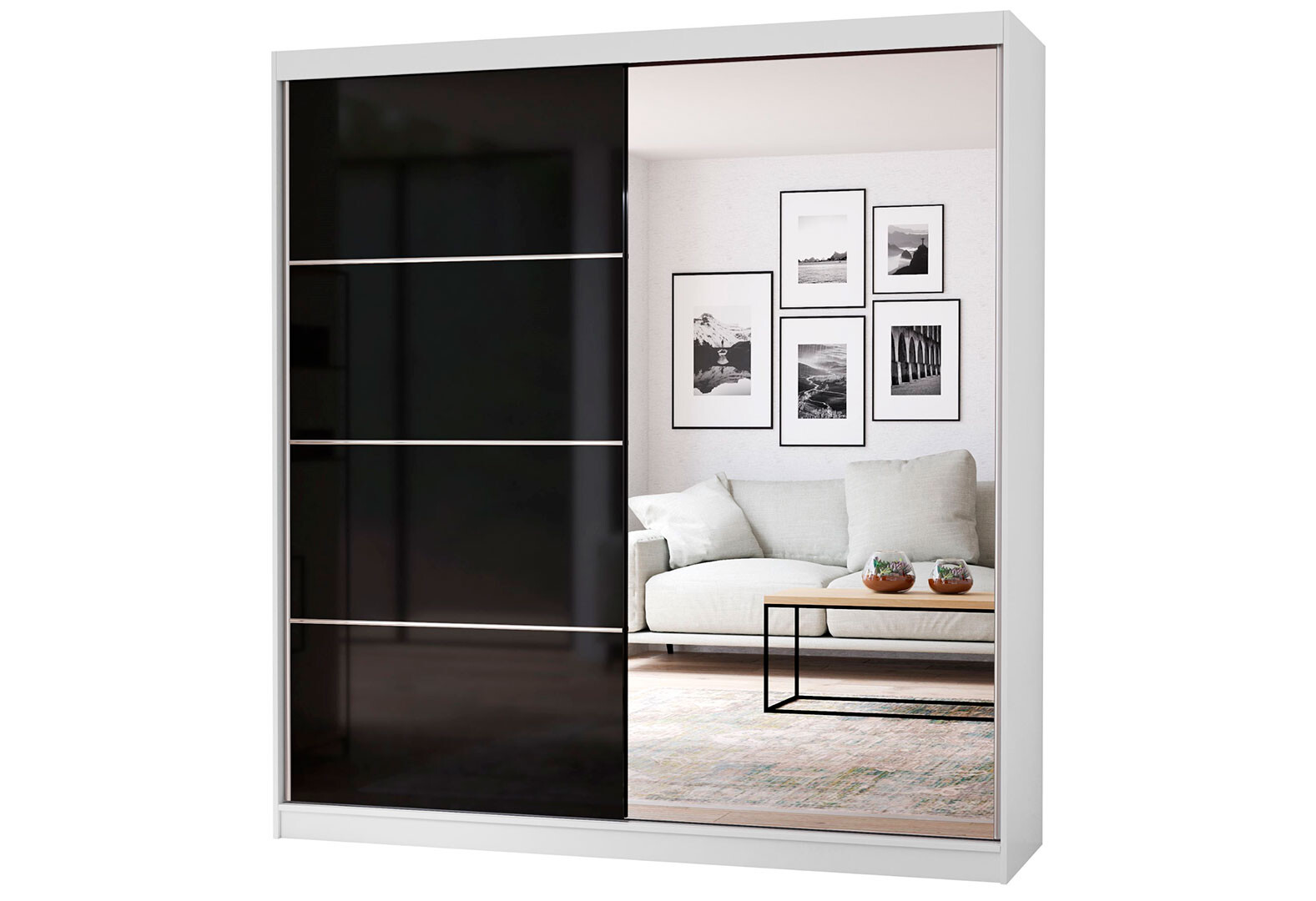 Skriňa Multi 31, 203 biela + fasáda čierny lesk + zrkadlo