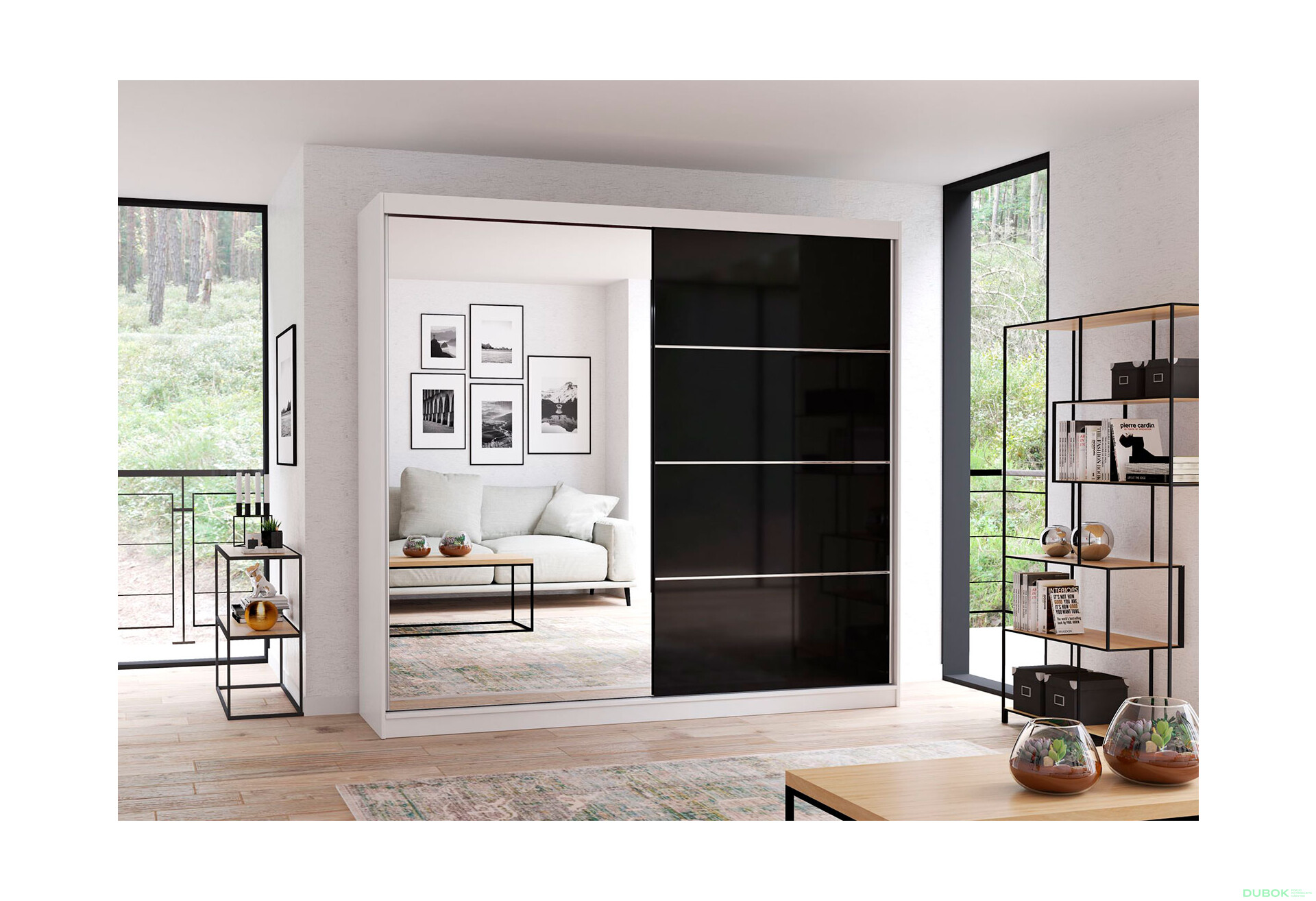 - Posuvné dvere. Dvojdverové posuvné dvere sú praktickým riešením pre úsporu priestoru, pričom umožňujú jednoduchý prístup k obsahu skrine.