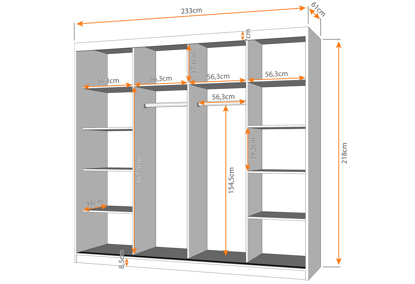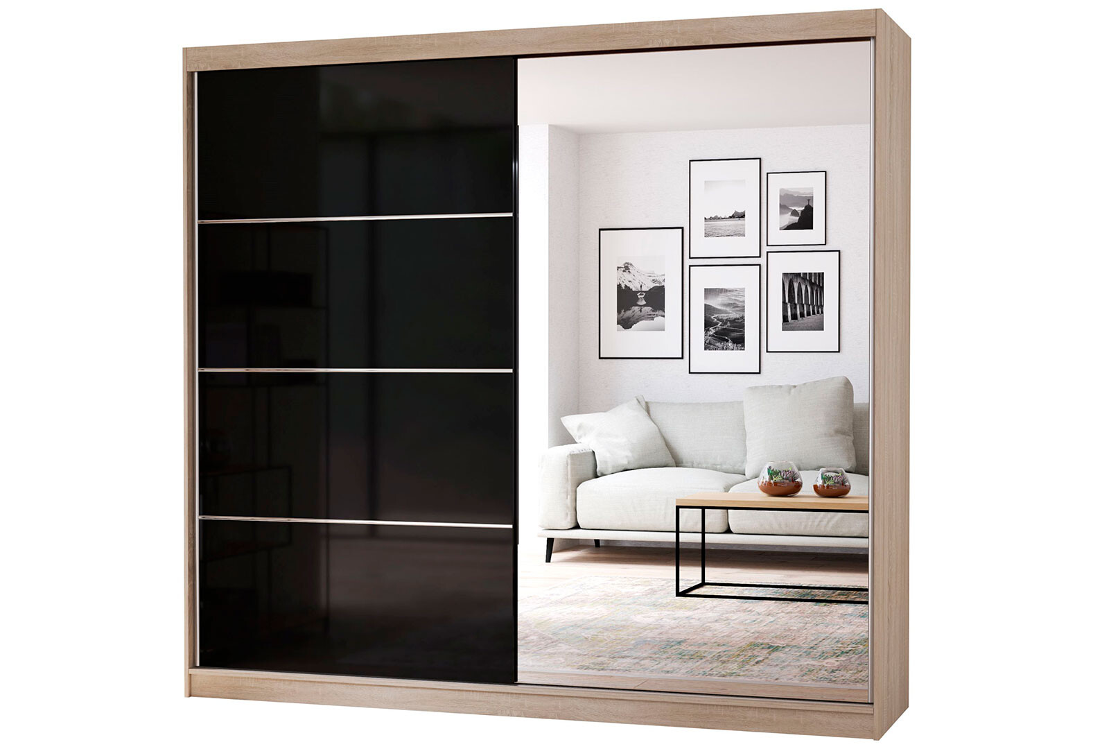 Skriňa Multi 31, 233 dub sonoma + fasáda čierny lesk + zrkadlo