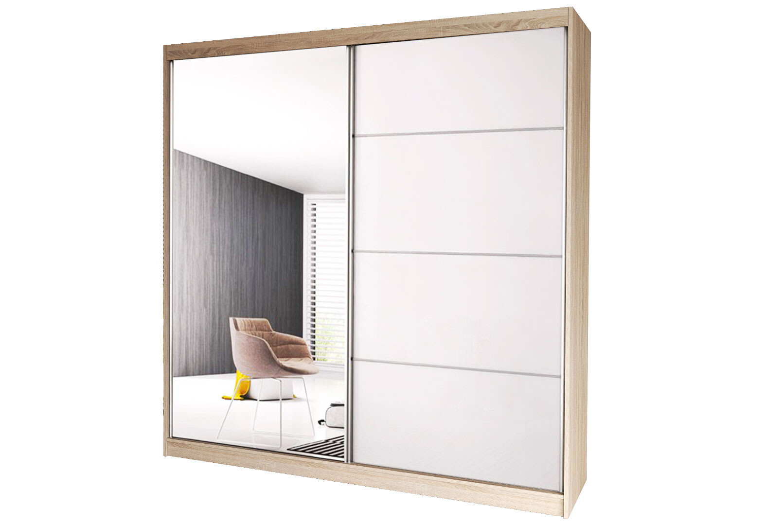 Skriňa Multi 35, 183 dub sonoma + fasáda biely lesk + zrkadlo