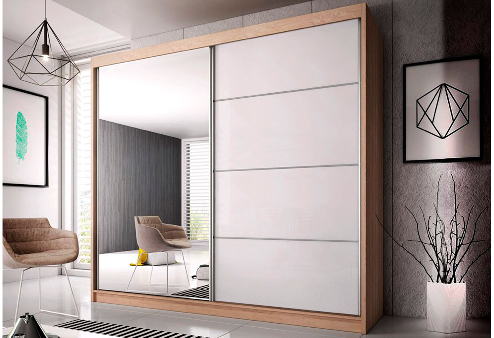 Fotografia 2 - Skriňa Multi 35, 183 dub sonoma + fasáda biely lesk + zrkadlo