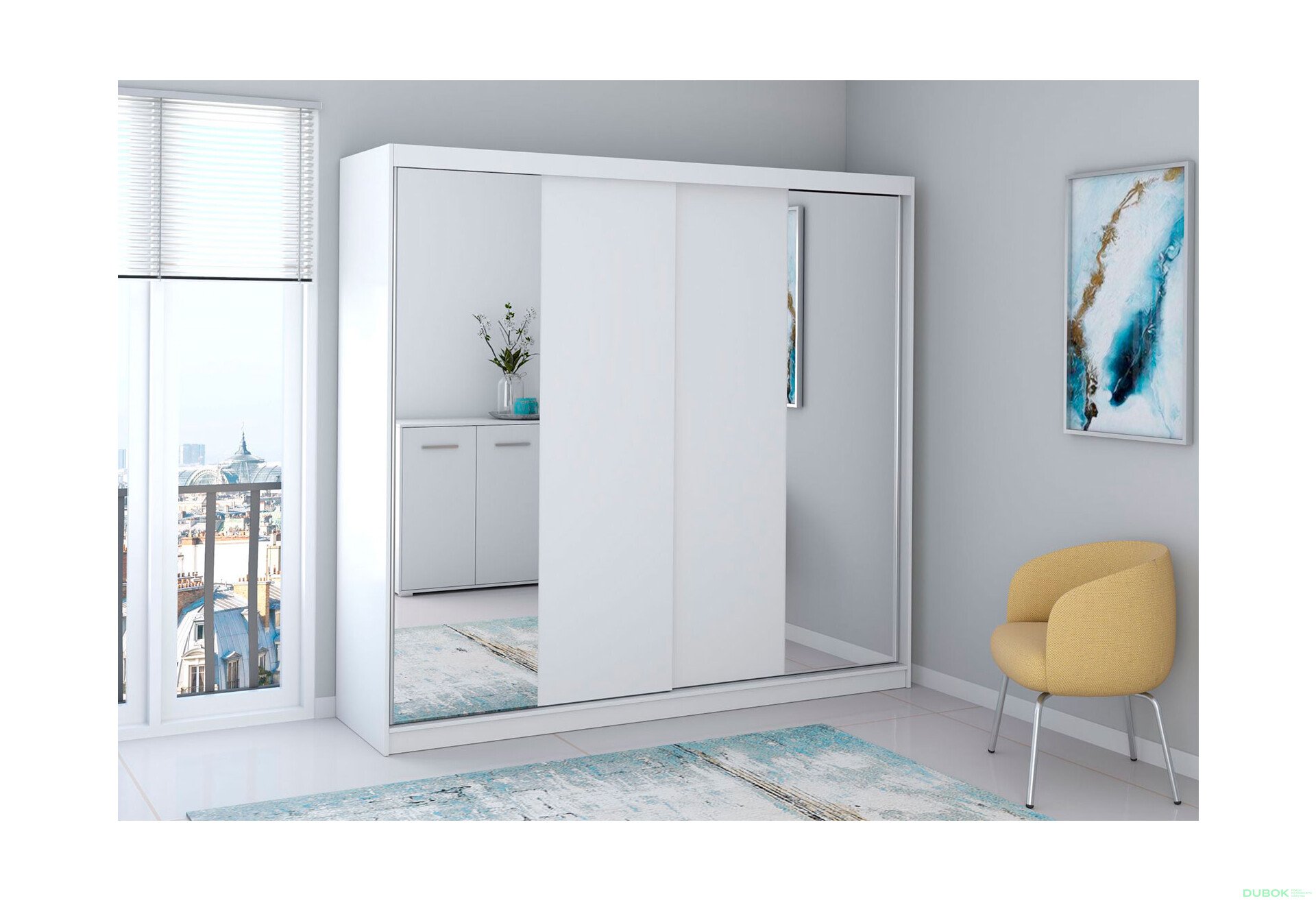 Skriňa Multi 38 v elegantnej bielej farbe s fasádou a zrkadlom je ideálnym riešením pre moderné interiéry. S jej rozmermi 233 cm na šírku, 218 cm na výšku a 61 cm na hĺbku ponúka dostatok úložného priestoru pre vaše oblečenie a doplnky. Posuvné dvere s integrovaným zrkadlom nielenže šetria miesto, ale aj opticky zväčšujú priestor a dodávajú mu svetlosť. Skriňa je vyrobená z kvalitnej drevotriesky s laminovanou povrchovou úpravou, ktorá zaručuje jej odolnosť a jednoduchú údržbu. Moderný štýl skrine sa hodí do rôznych typov interiérov, pričom hliníkový profil úchytiek dodáva celkovému dizajnu sofistikovanosť a eleganciu.