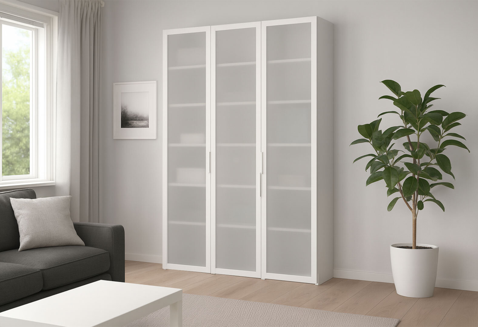Fotografia 3 - Skriňa Neapol 3D 150 s vitrínou, saténová, bílá