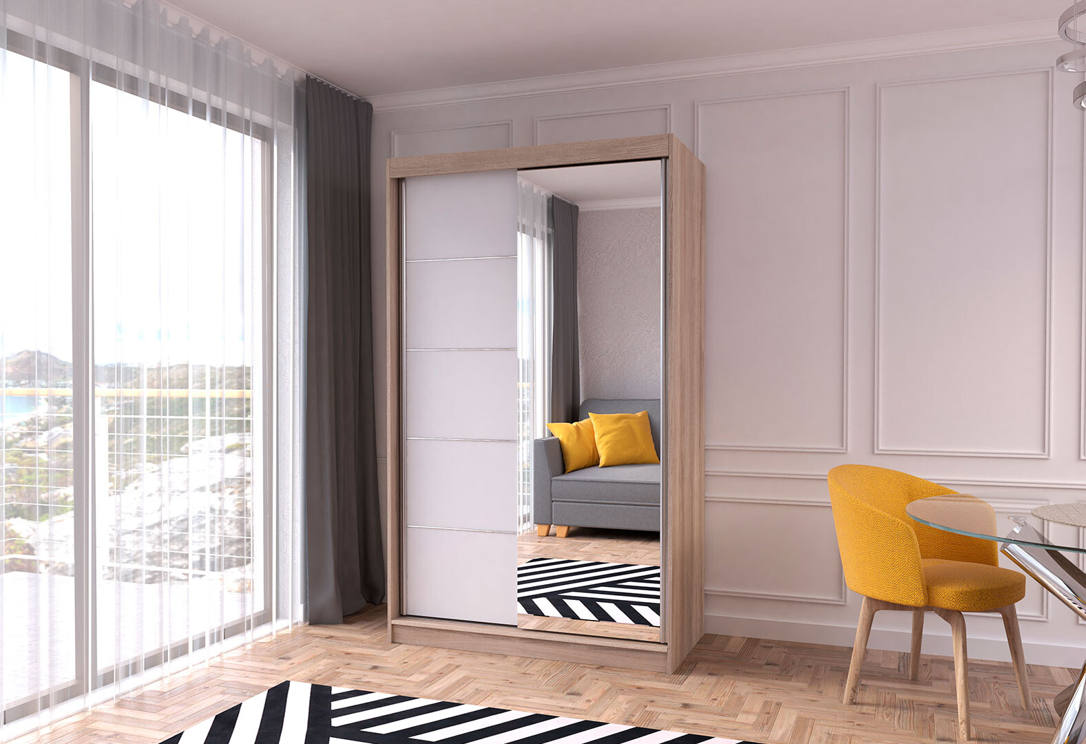 Fotografia 3 - Skriňa Neomi 05 so zrkadlom dub sonoma / biely