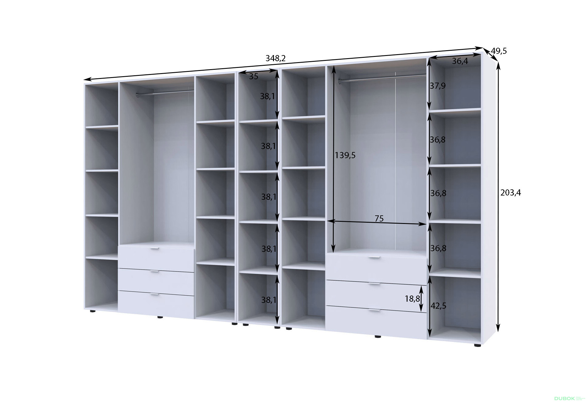 - Veľkosť. S rozmermi 348,20 cm x 203,40 cm x 49,50 cm poskytuje dostatočný priestor na uskladnenie všetkých potrebných vecí.