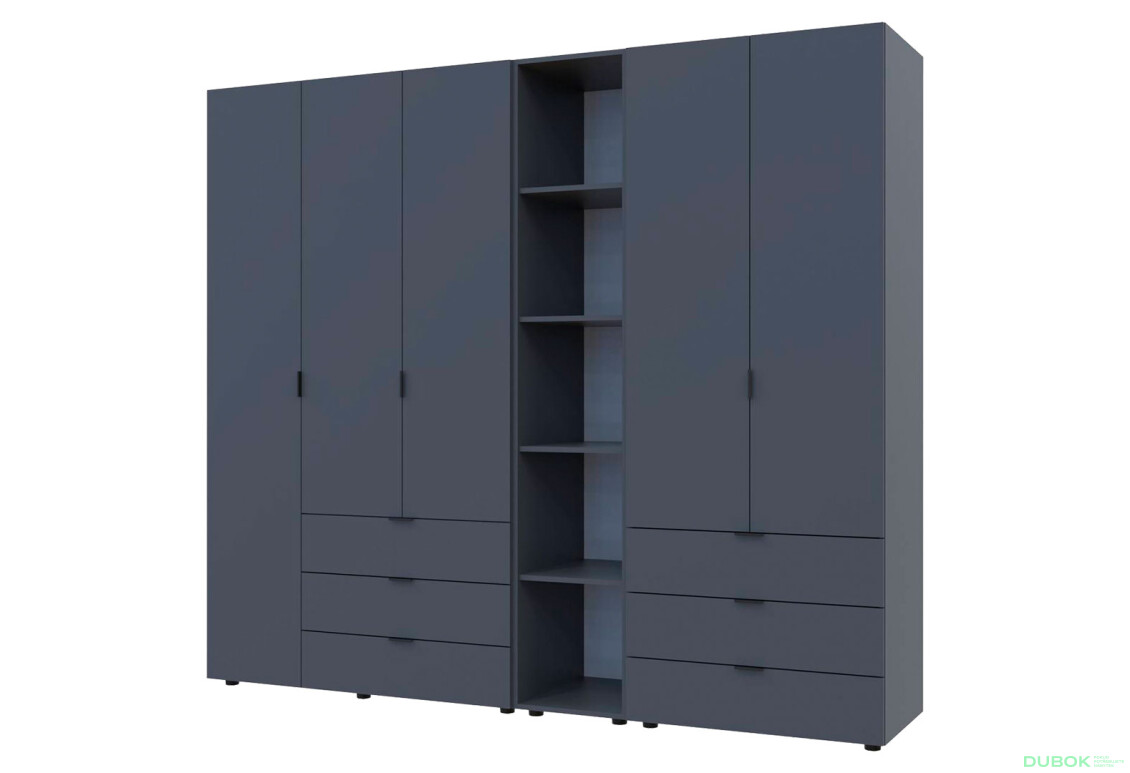 Skriňa päťdverová s regálom Gelar 232 cm v grafitovom dekore je ideálnym riešením pre moderné interiéry, kde sa kladie dôraz na funkčnosť a estetiku. S rozmermi 232 cm na šírku, 203.4 cm na výšku a hĺbkou 49.5 cm poskytuje dostatok úložného priestoru pre oblečenie a ďalšie predmety. Vyrobená z kvalitnej drevotriesky, táto skriňa je vybavená otváracími dverami a guličkovými vodičmi zásuviek, čo zabezpečuje hladké a tiché otváranie. Laminovaný povrch je odolný a ľahko sa udržiava, čo zaručuje dlhú životnosť výrobku. Vnútorné usporiadanie zahŕňa police, tyč na oblečenie a zásuvky, čo zvyšuje praktickosť a organizáciu priestoru. Objednajte si túto skriňu na dubok.sk a vylepšite svoj domov.
