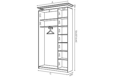 - Vnútorné usporiadanie skrine. Skrina obsahuje policu a tyč, čo umožňuje efektívne usporiadanie oblečenia a doplnkov.