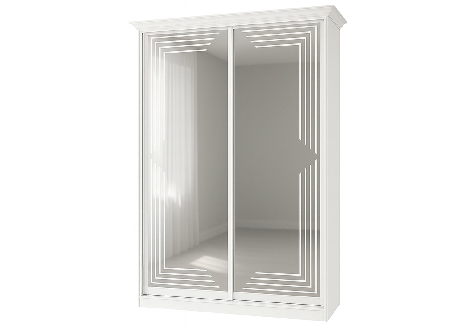Skriňa Rim-Veneziano 2D 1,8 m biela s rímsou, s umeleckým matovaním na zrkadle №0580LR