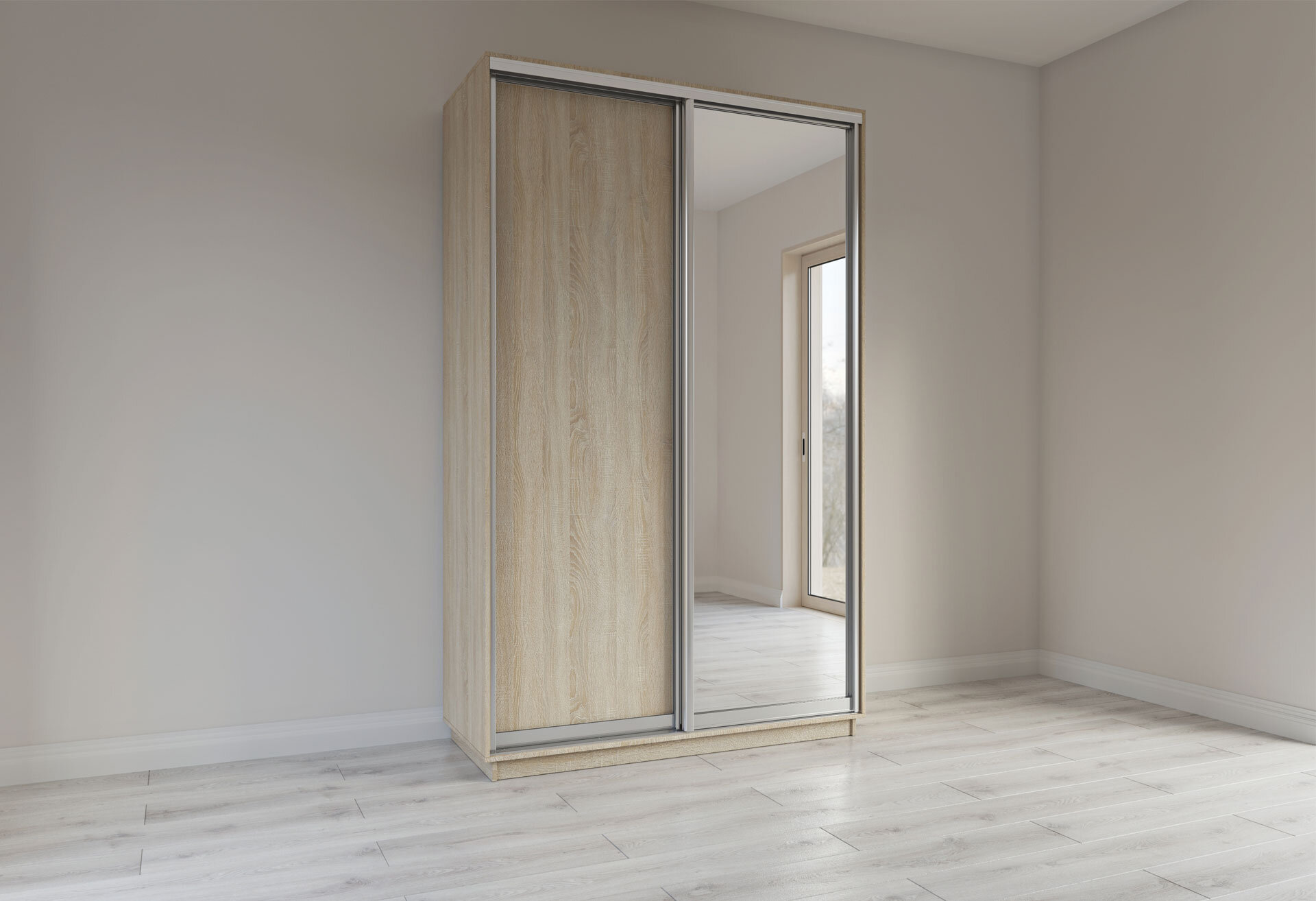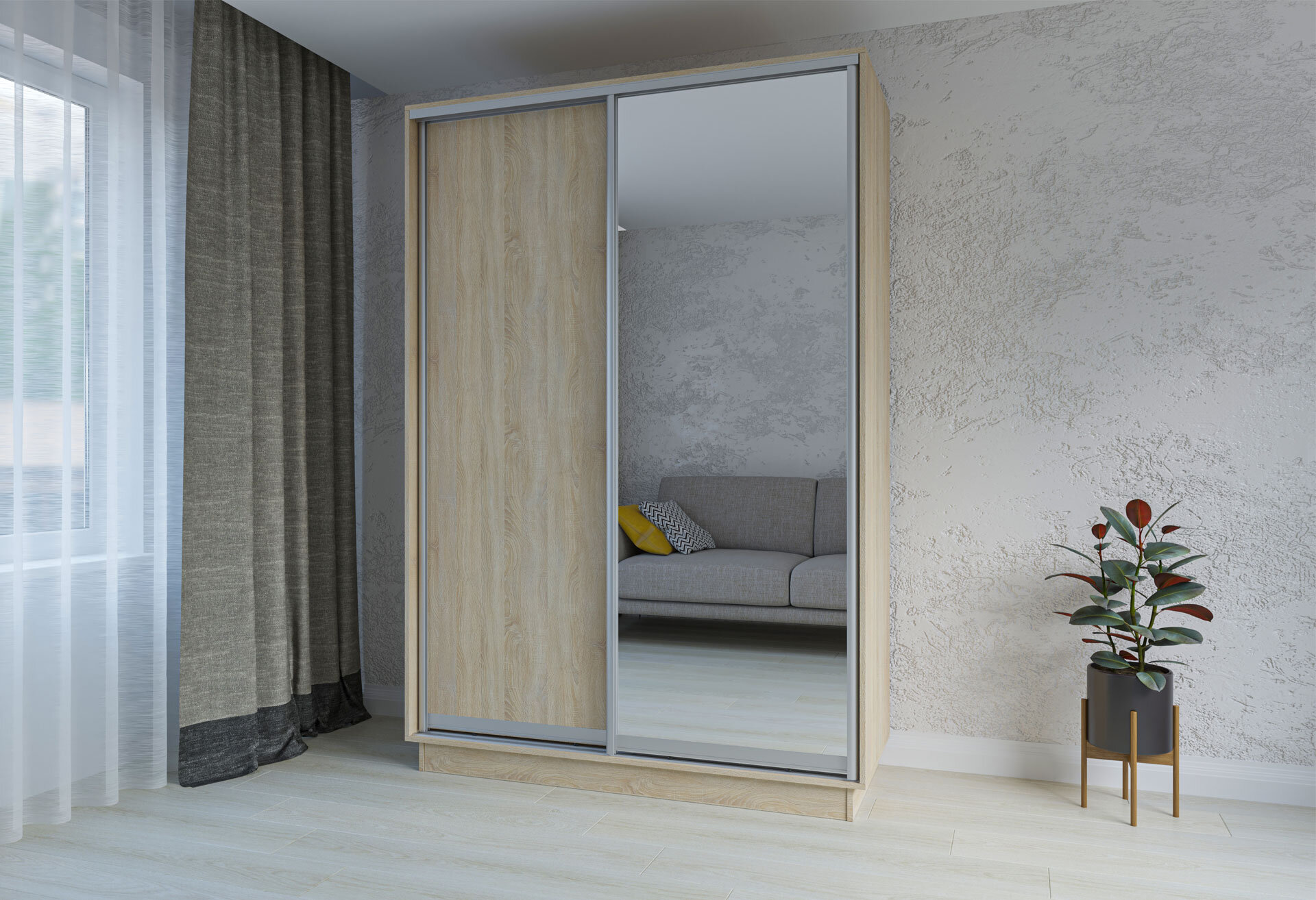Fotografia 1 - Skriňa s posuvnými dverami 2200x1400x600 1DTD 1 Zrkadlo dub sonoma, profil strieborný
