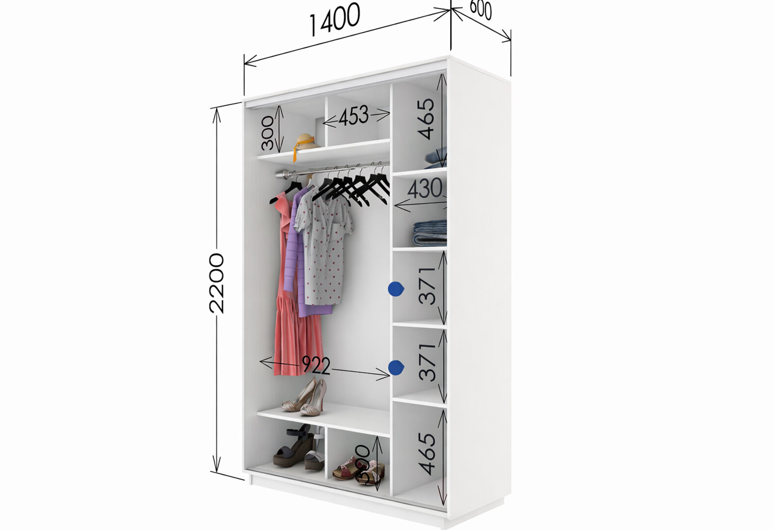 Fotografia 2 - Skriňa s posuvnými dverami 2200x1400x600 1DTD 1 Zrkadlo nymphea alba, profil strieborný