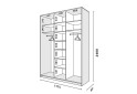 - Veľkosť. S rozmermi 180 cm na šírku, 240 cm na výšku a 60 cm na hĺbku ponúka dostatok priestoru na uloženie oblečenia a doplnkov.