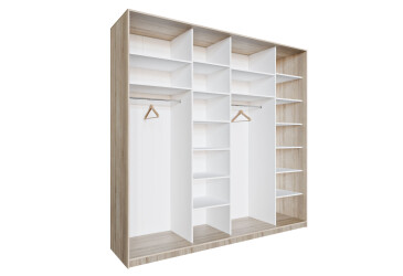 - Vnútorné usporiadanie. Obsahuje police a tyč na oblečenie, čo zabezpečuje efektívne využitie priestoru a prehľadnosť.