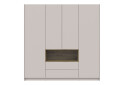 Štvordverová skriňa Dale v modernom štýle je ideálnym riešením pre tých, ktorí hľadajú praktický a elegantný nábytok do svojho interiéru. S rozmermi 206x52x220 cm ponúka dostatok priestoru na uskladnenie oblečenia a ďalších predmetov. Vnútorné usporiadanie skrine je premyslené a zahŕňa police, tyč na oblečenie a zásuvky, čo zabezpečuje efektívne využitie priestoru. Skriňa je vyrobená z kvalitnej drevotriesky s laminovaným povrchom, ktorý je odolný a ľahko udržiavateľný. Dekor v odtieni kašmír a dub artisan dodáva skrini moderný a nadčasový vzhľad, ktorý sa hodí do rôznych interiérových štýlov. S otváracími dverami a guličkovým vedením zásuviek s plným výsuvom je používanie tejto skrine veľmi pohodlné.