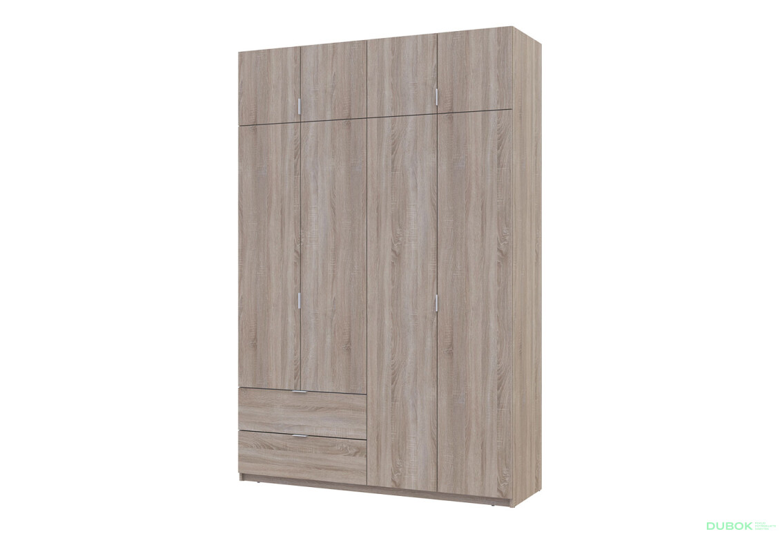 Skriňa štvordverová Lukas 160 cm dub sonoma je ideálnym riešením pre každého, kto hľadá moderný a funkčný nábytok do svojej spálne alebo šatne. S rozmermi 160 cm na šírku, 240 cm na výšku a 50 cm na hĺbku ponúka dostatok úložného priestoru na oblečenie a ďalšie predmety. Jej elegantný dizajn v dekore dub sonoma sa skvele hodí do rôznych interiérov, pričom moderný štýl zaručuje, že sa stane súčasťou vášho domova. Vnútorné usporiadanie skrine je premyslené a praktické, s policami, tyčou na oblečenie a zásuvkami, čo umožňuje efektívne usporiadanie vašich vecí. Kvalitná laminovaná povrchová úprava a guličkové vedenie plného výsuvu zásuviek zaručujú dlhú životnosť a bezproblémové používanie. S touto skriňou získate nielen štýlový, ale aj veľmi funkčný kus nábytku, ktorý splní všetky vaše očakávania.