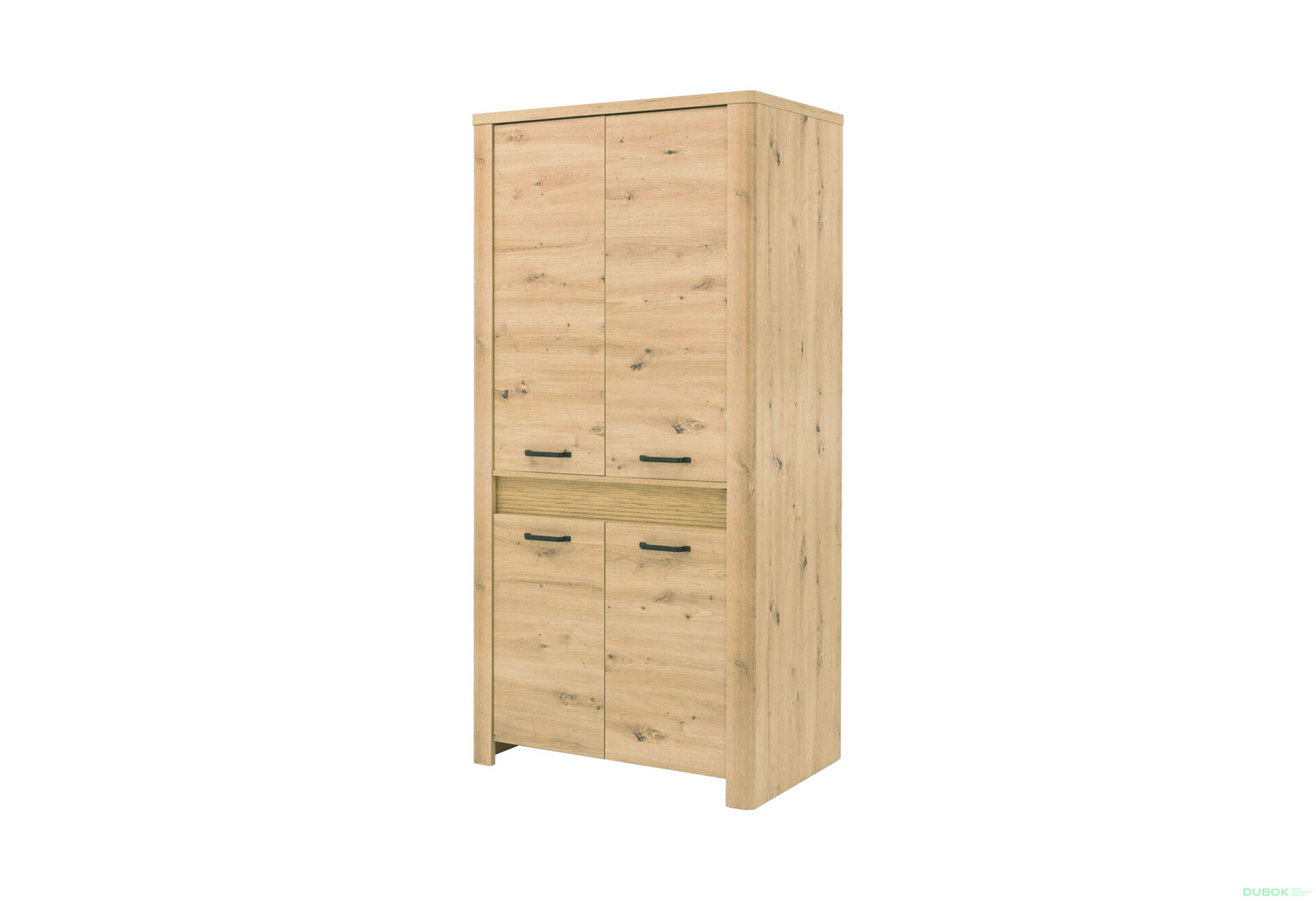 Štvordverová skriňa s ľad osvetlením Moris je ideálnym riešením pre moderné interiéry, ktoré potrebujú praktické a štýlové úložné priestory. S rozmermi 96x200x60 cm poskytuje dostatok miesta na oblečenie a doplnky, pričom jej elegantný dizajn v dekore dub artisan skvele zapadne do akéhokoľvek priestoru. Skriňa je vybavená otváracími dverami, ktoré sú doplnené o moderné kovové úchytky, a vnútorné usporiadanie s policami a tyčou na oblečenie zabezpečuje prehľadnosť a funkčnosť. Ľad osvetlenie dodáva skrini príjemný nádych a zvyšuje jej praktickosť pri hľadaní vecí vo vnútri.