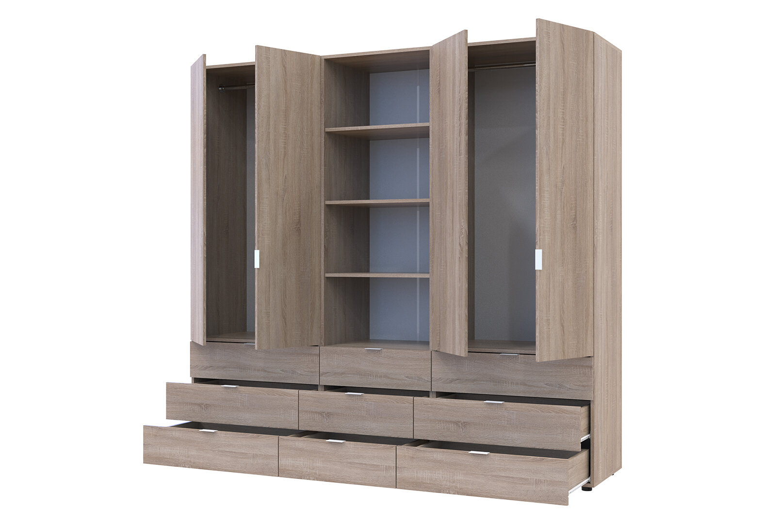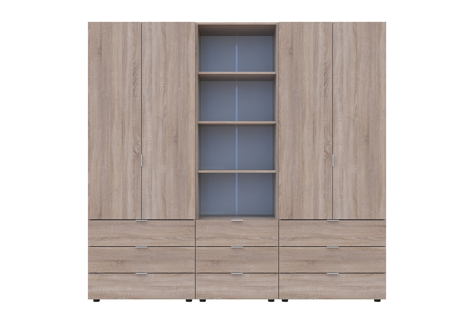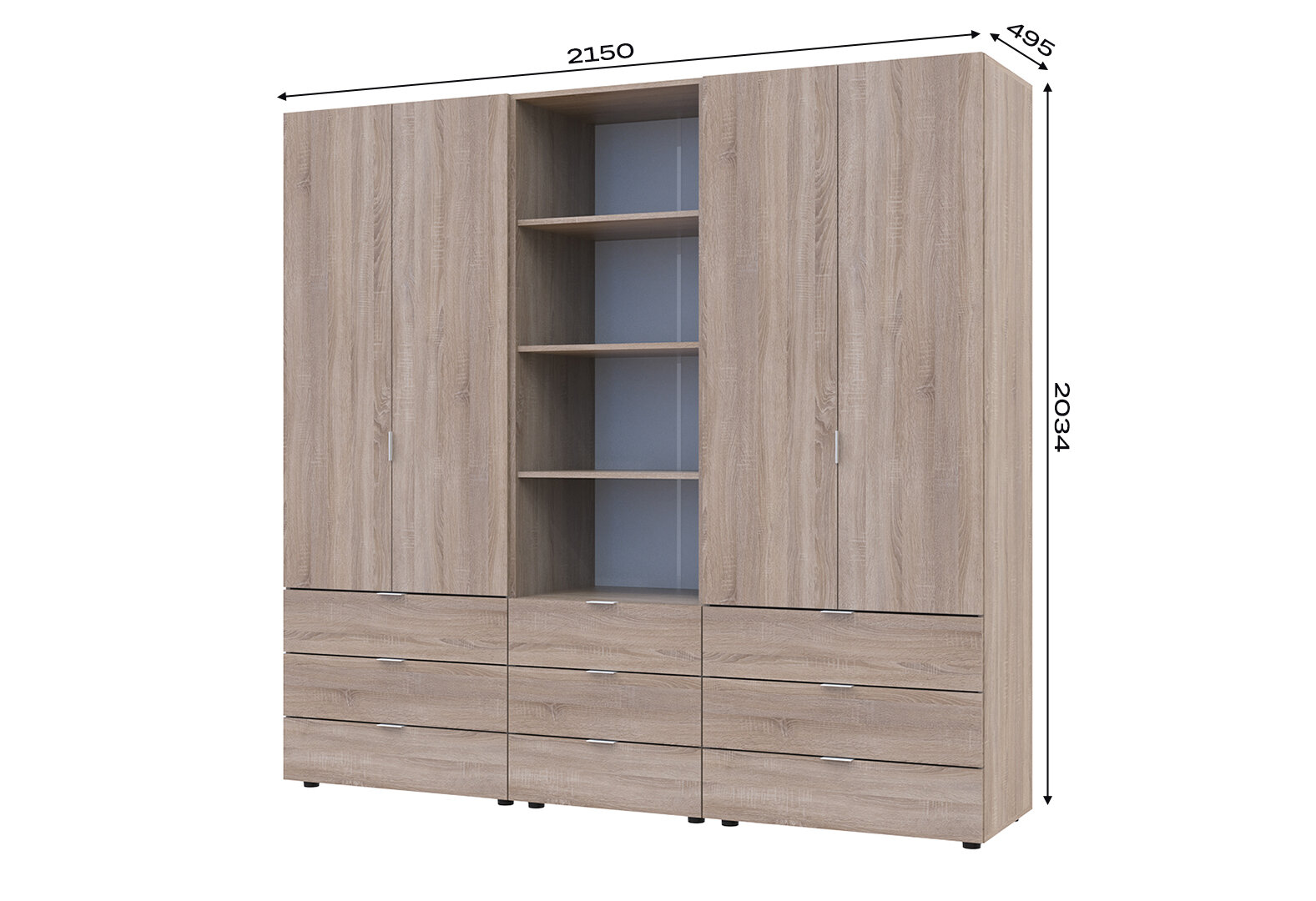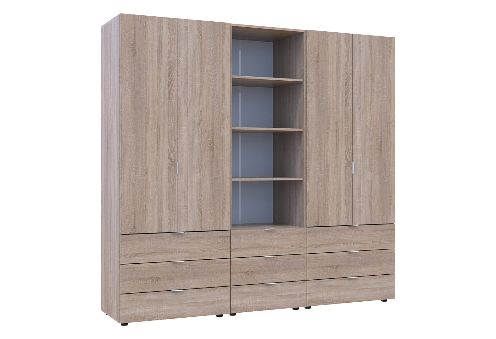 Skriňa štvordverová s regálom s zásuvkami Gelar 215 cm dub sonoma