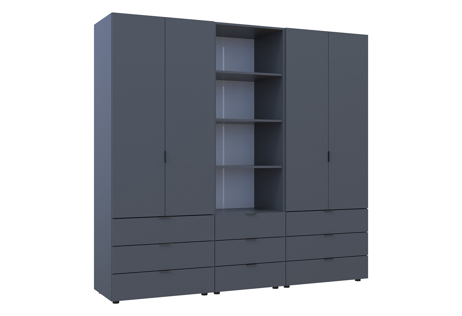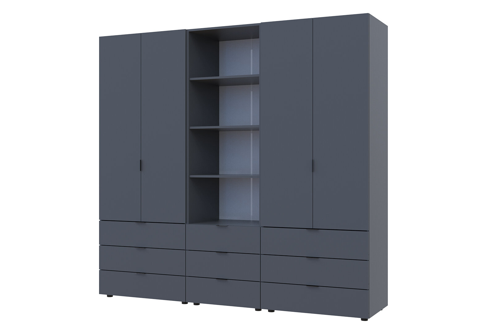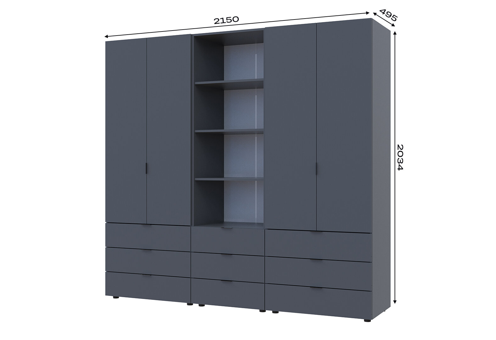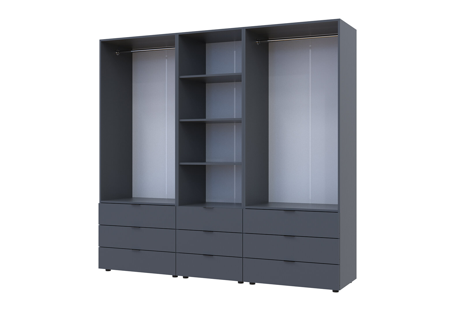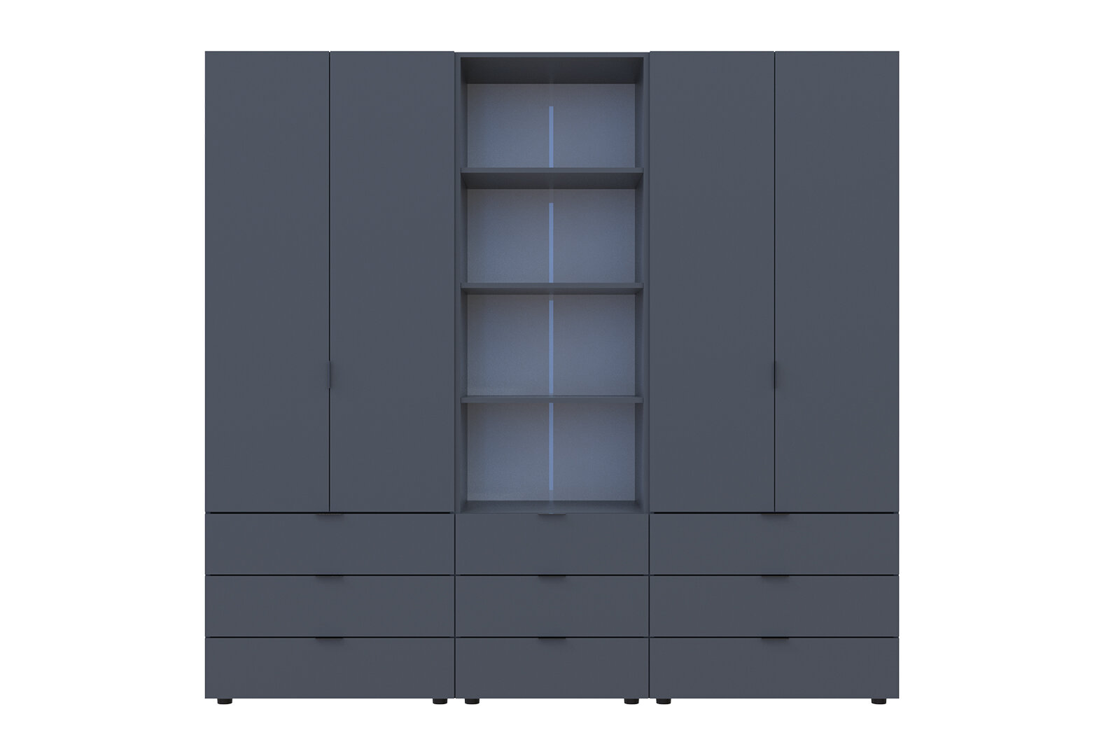 Skriňa štvordverová s regálom s zásuvkami Gelar 215 cm grafit