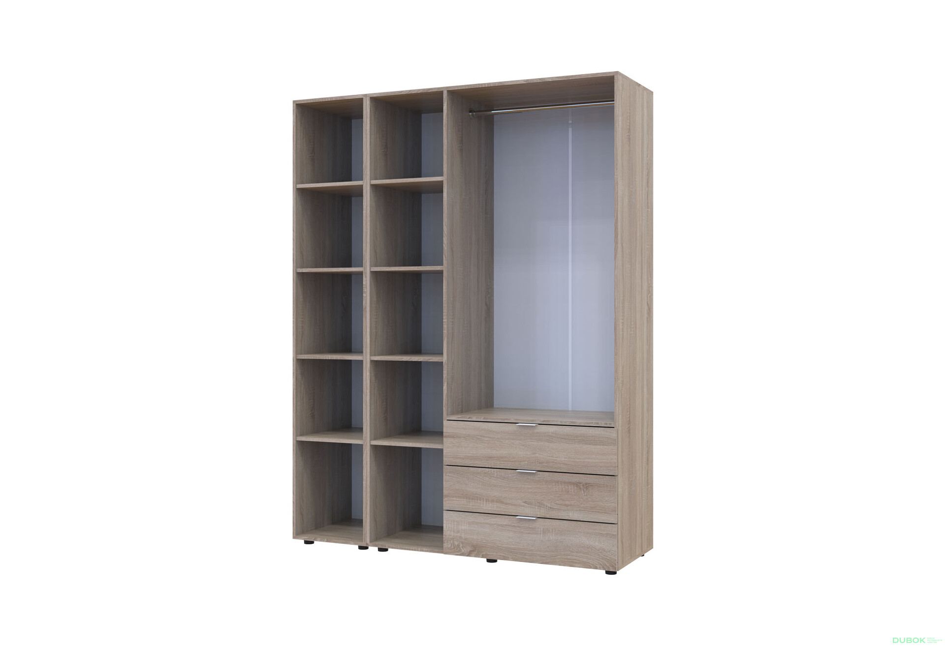 - Vnútorné usporiadanie. S policami, tyčou pod oblečenie a zásuvkami ponúka skriňa maximálnu variabilitu a efektívnosť.