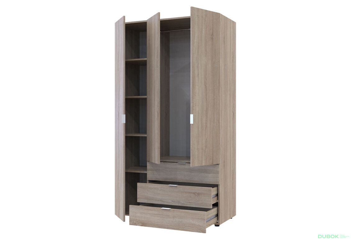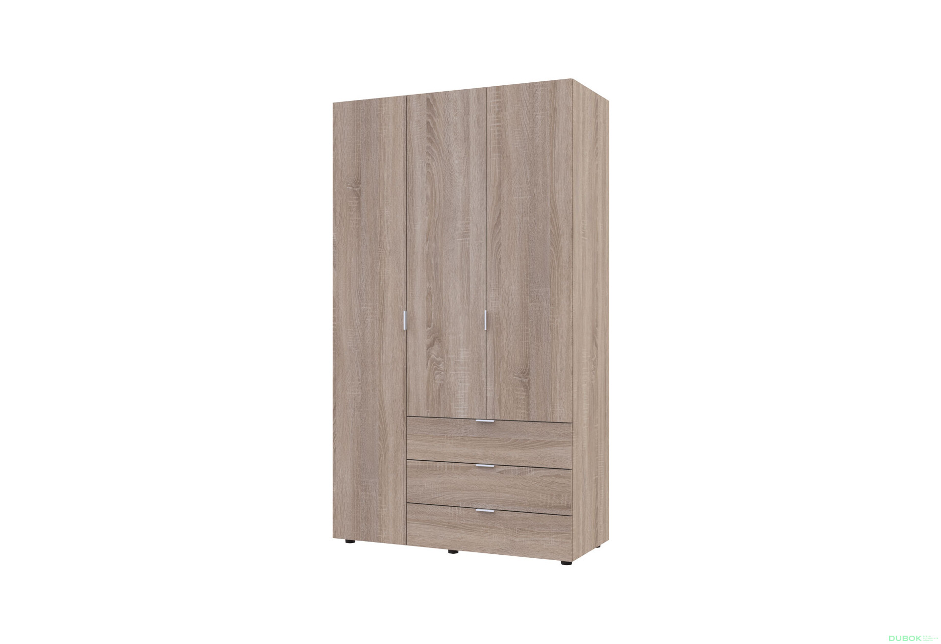 Skriňa trojdverová Gelar v dekorácii dub sonoma je ideálnym riešením pre moderné interiéry, ktoré potrebujú praktický a štýlový úložný priestor. S rozmermi 116,2 cm na šírku, 203,4 cm na výšku a hĺbkou 49,5 cm ponúka dostatok priestoru na oblečenie a doplnky. Je vyrobená z kvalitnej drevotriesky s laminovaným povrchom, čo zaručuje jej odolnosť a jednoduchú údržbu. Trojdverový dizajn s otváracími dverami a praktickým vnútorným usporiadaním s policami, tyčou na oblečenie a zásuvkami zabezpečuje prehľadnosť a efektívnosť v usporiadaní vašich vecí. Moderný štýl tejto skrine skvele doplní každý interiér a poskytne mu nádych elegancie.