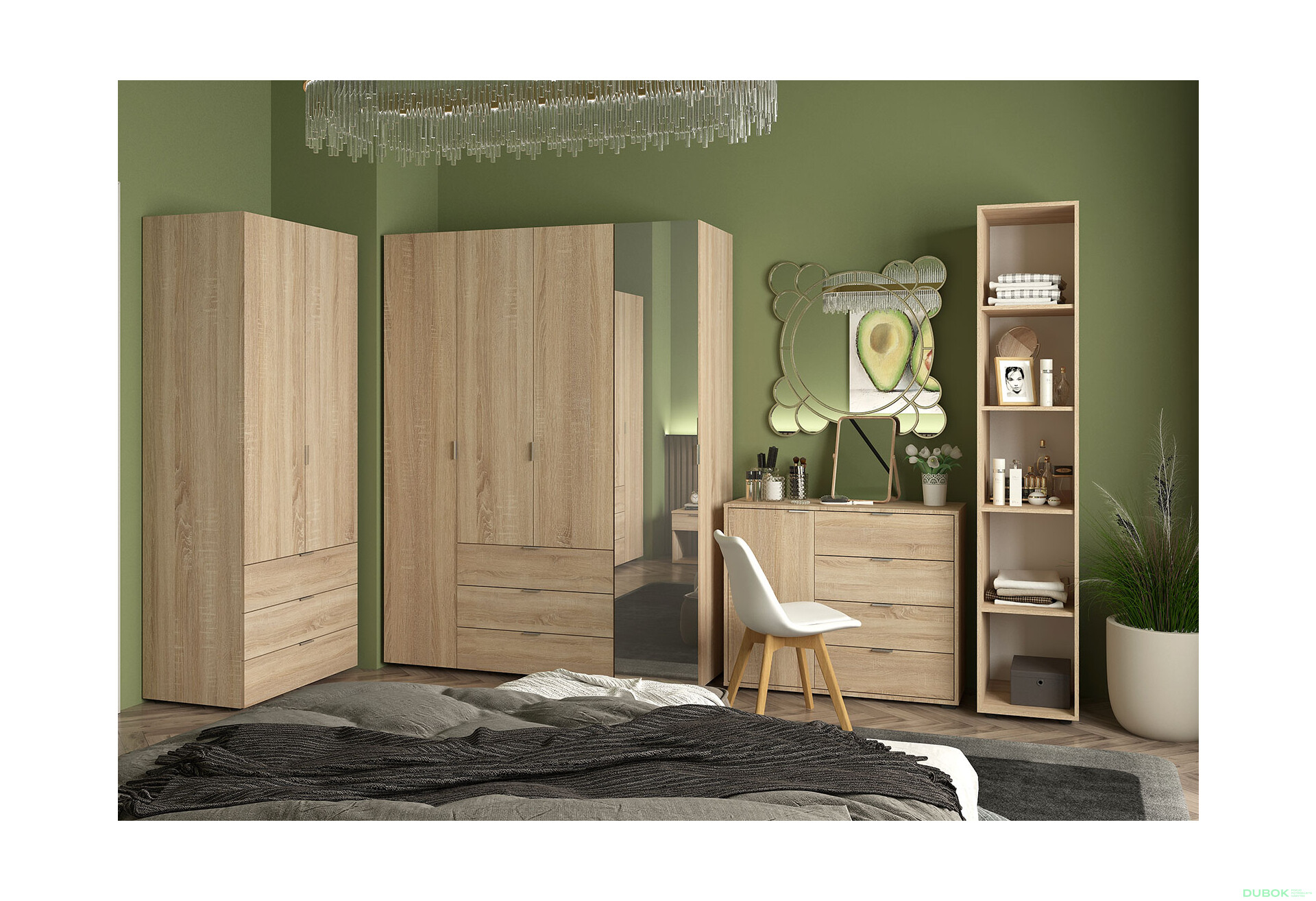 - Vnútorné usporiadanie: S policami, tyčou pod oblečenie a so zásuvkami. Umožňuje efektívne usporiadanie a organizáciu vecí.
