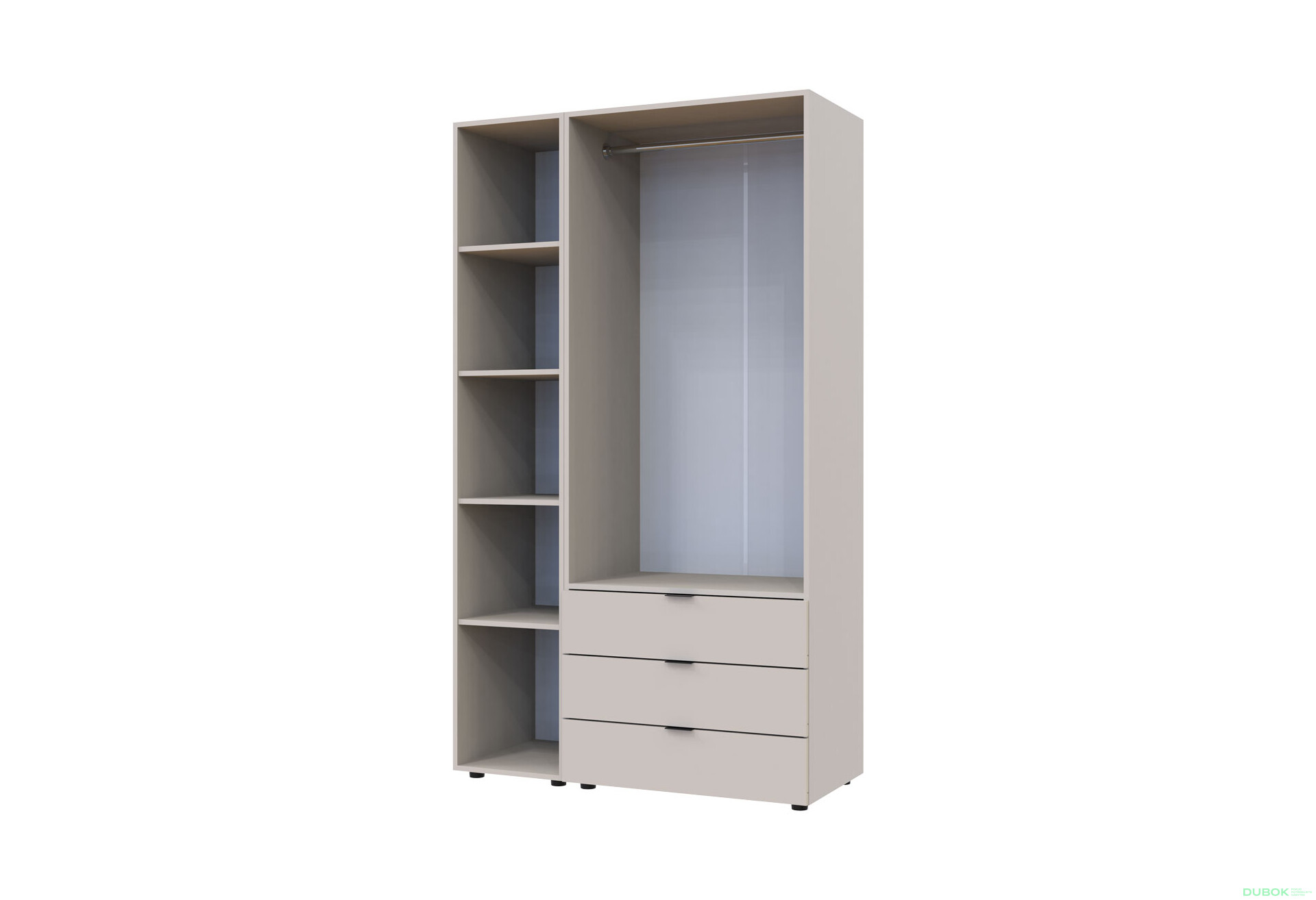 - Vnútorné usporiadanie. S policami, tyčou na oblečenie a zásuvkami pre maximálnu funkčnosť a organizáciu.