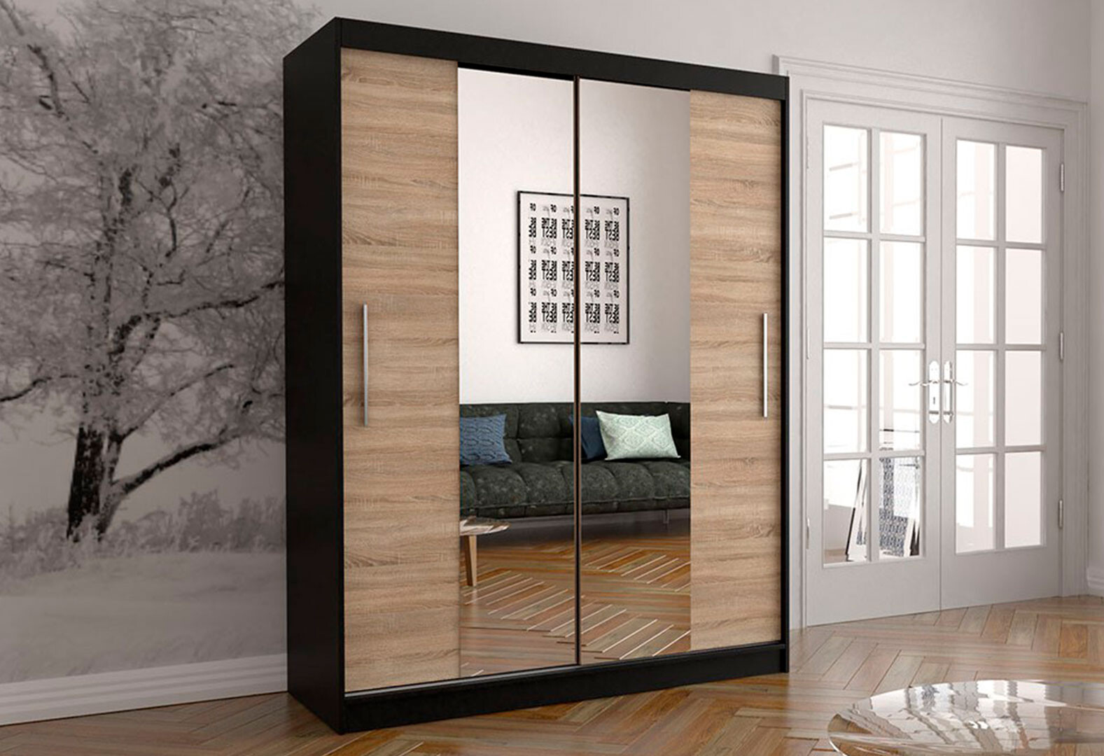 Skriňa Vista 01 čierna / dub sonoma
