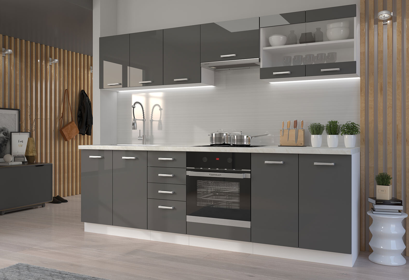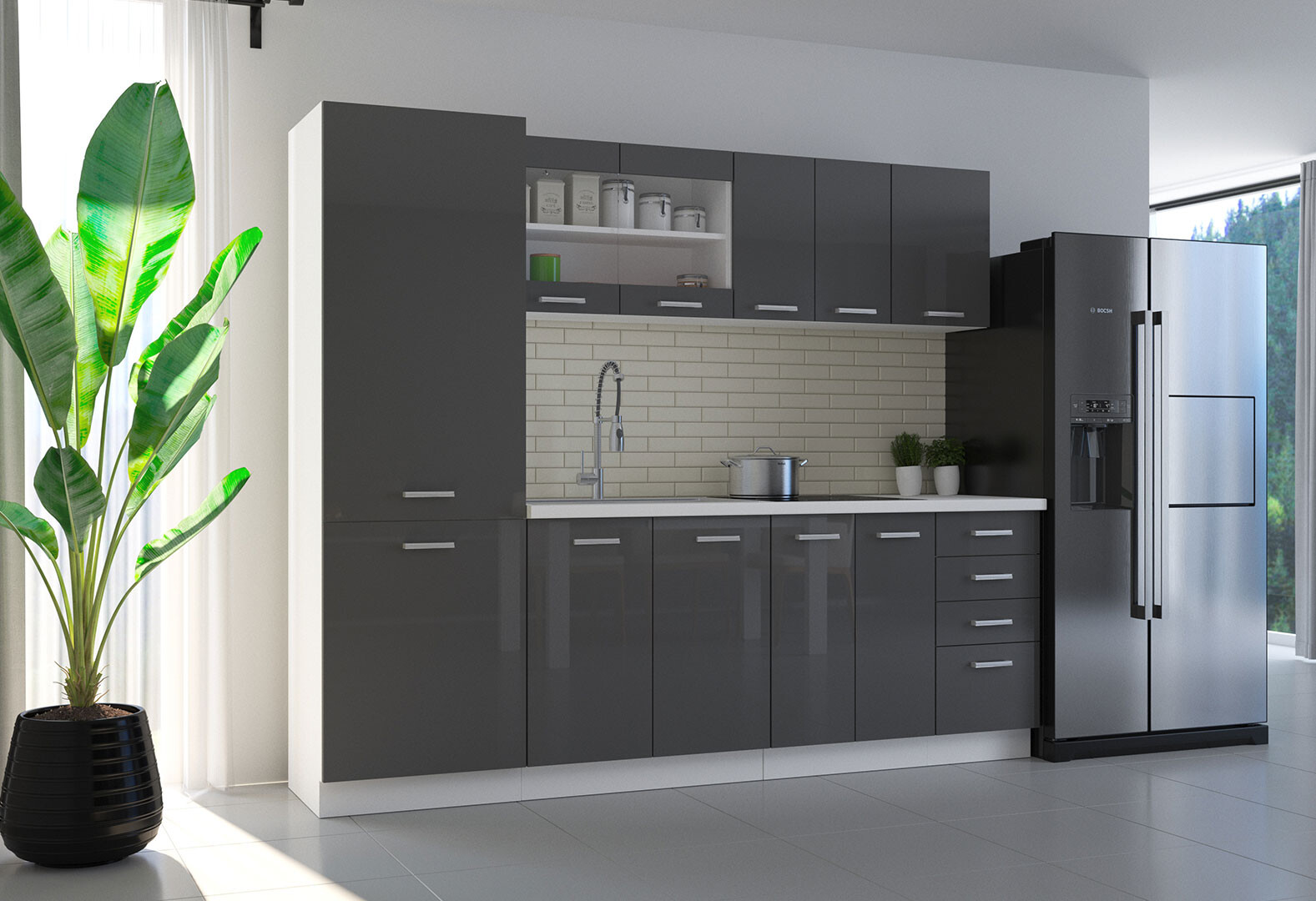 Modulárna kuchyňa Sonia biely / šedý lesk