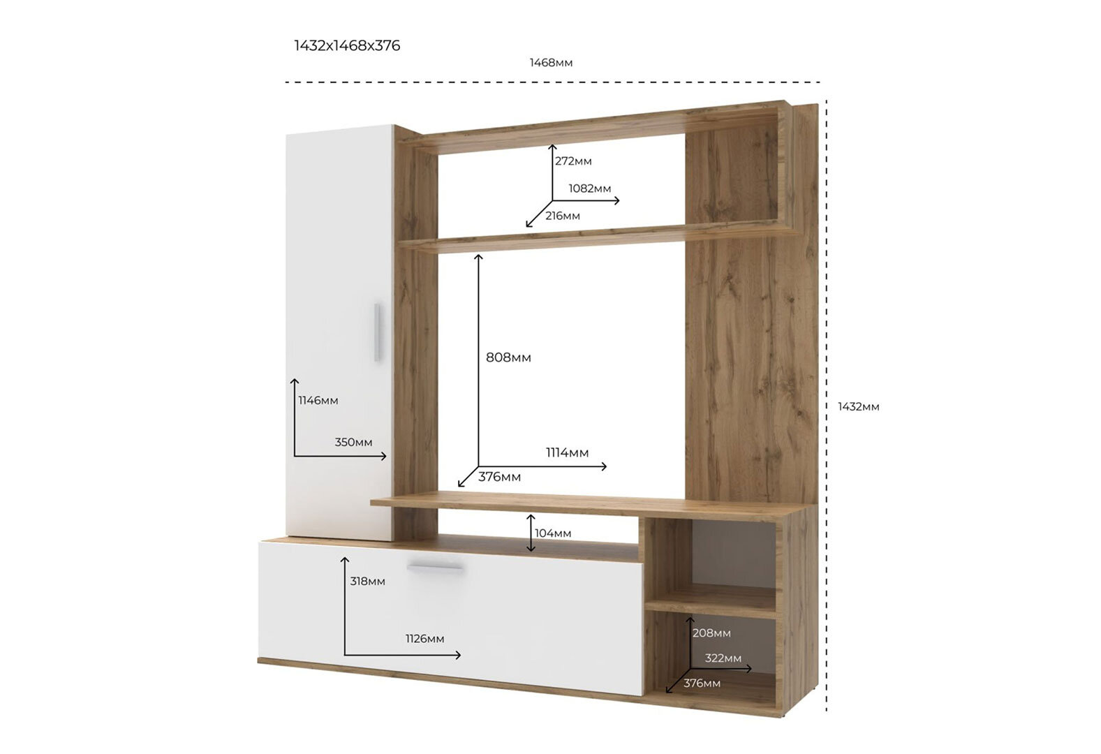 Fotografia 3 - Televízny stojan Kona 151 cm Dub ewok / Biely