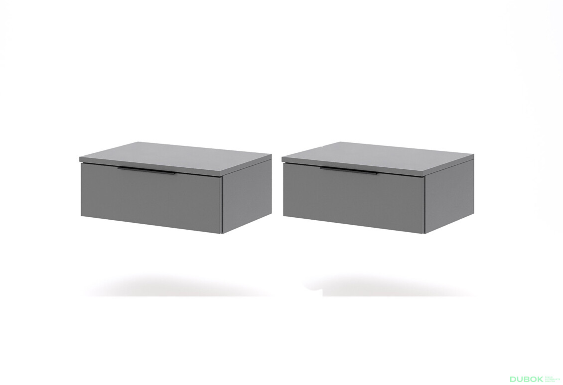 Závesné skrinky 1š (2 ks), grafit Doni sú moderným a praktickým riešením pre vašu spálňu. S ich elegantným grafitovým dekorom sa perfektne hodia do súčasných interiérov a poskytnú vám dostatok úložného priestoru. Tieto skrinky sú navrhnuté tak, aby spĺňali potreby moderného bývania, pričom kombinujú funkčnosť s atraktívnym dizajnom. S rozmermi 50 cm na šírku, 18 cm na výšku a 35 cm na hĺbku sú ideálne na umiestnenie vedľa postele alebo na iné strategické miesta vo vašej domácnosti. Materiál prednej strany a korpusu je kvalitná drevotrieska s laminovanou povrchovou úpravou, čo zabezpečuje odolnosť a jednoduchú údržbu.