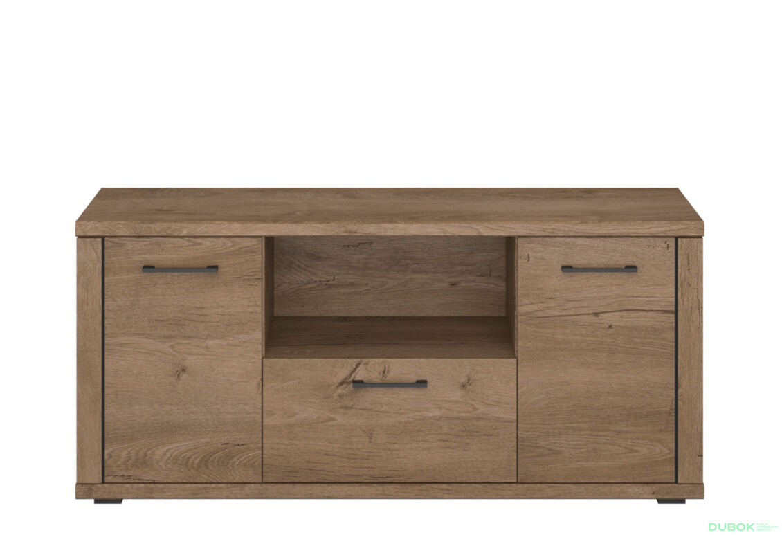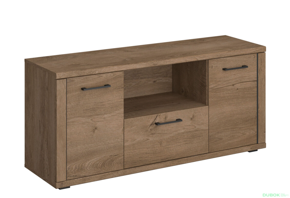 TV stolík dub lefkas Cordan je moderný a funkčný kus nábytku, ktorý skvele zapadne do každého obývacieho priestoru. S rozmermi 135 cm na šírku, 61,6 cm na výšku a 41 cm na hĺbku ponúka dostatok úložného priestoru, pričom jeho elegantný dizajn zaručuje, že sa stane štýlovým doplnkom vo vašej domácnosti. Stolík je vyrobený z kvalitnej drevotriesky s laminovanou povrchovou úpravou, čo zaisťuje jeho dlhú životnosť a jednoduchú údržbu. Vďaka guličkovému vedeniu plného výsuvu sú zásuvky veľmi praktické a pohodlné na používanie, čo zvyšuje celkovú funkčnosť stolíka.
