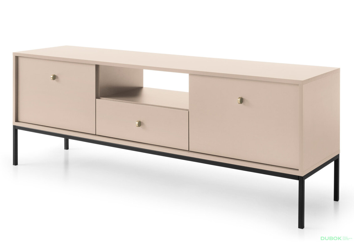 TV stolík MRTV154 Mono pieskovo béž je ideálnym riešením pre moderné obývacie izby, ktoré potrebujú praktický a štýlový nábytok. S rozmermi 153.40 cm na šírku, 56.20 cm na výšku a 39.00 cm na hĺbku ponúka dostatok úložného priestoru, pričom zachováva kompaktné rozmery. Tento stolík je vyrobený z kvalitnej drevotriesky s matnou povrchovou úpravou, čo zaručuje jeho dlhú životnosť a elegantný vzhľad. Kovové nohy pridávajú na stabilite a modernom vzhľade, zatiaľ čo guličkové vedenie plného výsuvu v zásuvkách zabezpečuje pohodlný prístup k uloženým veciam. S policami, zásuvkami a dvierkami ponúka dostatok priestoru na všetky vaše multimediálne zariadenia a príslušenstvo.