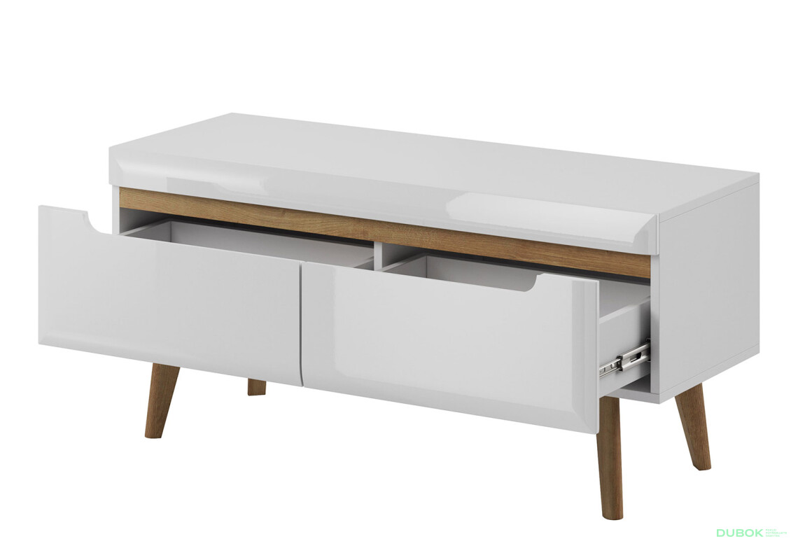 TV stolík NRTV107 Nordi v bielej farbe s bielym leskom je ideálnym doplnkom pre moderné obývacie izby. Jeho elegantný a minimalistický dizajn sa skvele hodí do každého interiéru, pričom poskytuje dostatok úložného priestoru s dvierkami, ktoré skryjú všetky vaše veci. Tento stolík je vyrobený z kvalitnej drevotriesky a MDF, čo zaručuje jeho odolnosť a dlhú životnosť. Vďaka lesklej povrchovej úprave sa stáva skutočným stredobodom pozornosti vo vašej domácnosti. S rozmermi 107 cm na šírku, 50 cm na výšku a 40 cm na hĺbku ponúka dostatok priestoru pre vašu televíziu a ďalšie elektronické zariadenia.