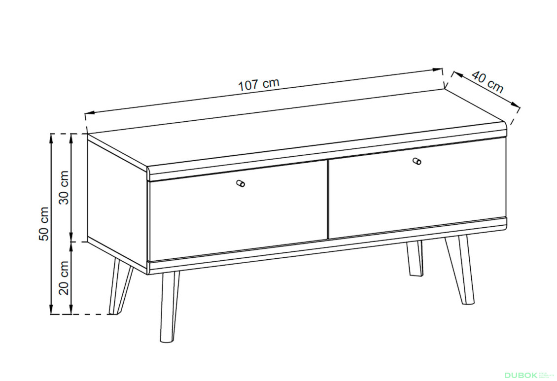 - Veľkosť. S rozmermi 107 cm na šírku, 50 cm na výšku a 40 cm na hĺbku je stolík ideálny pre menšie aj väčšie obývacie izby.