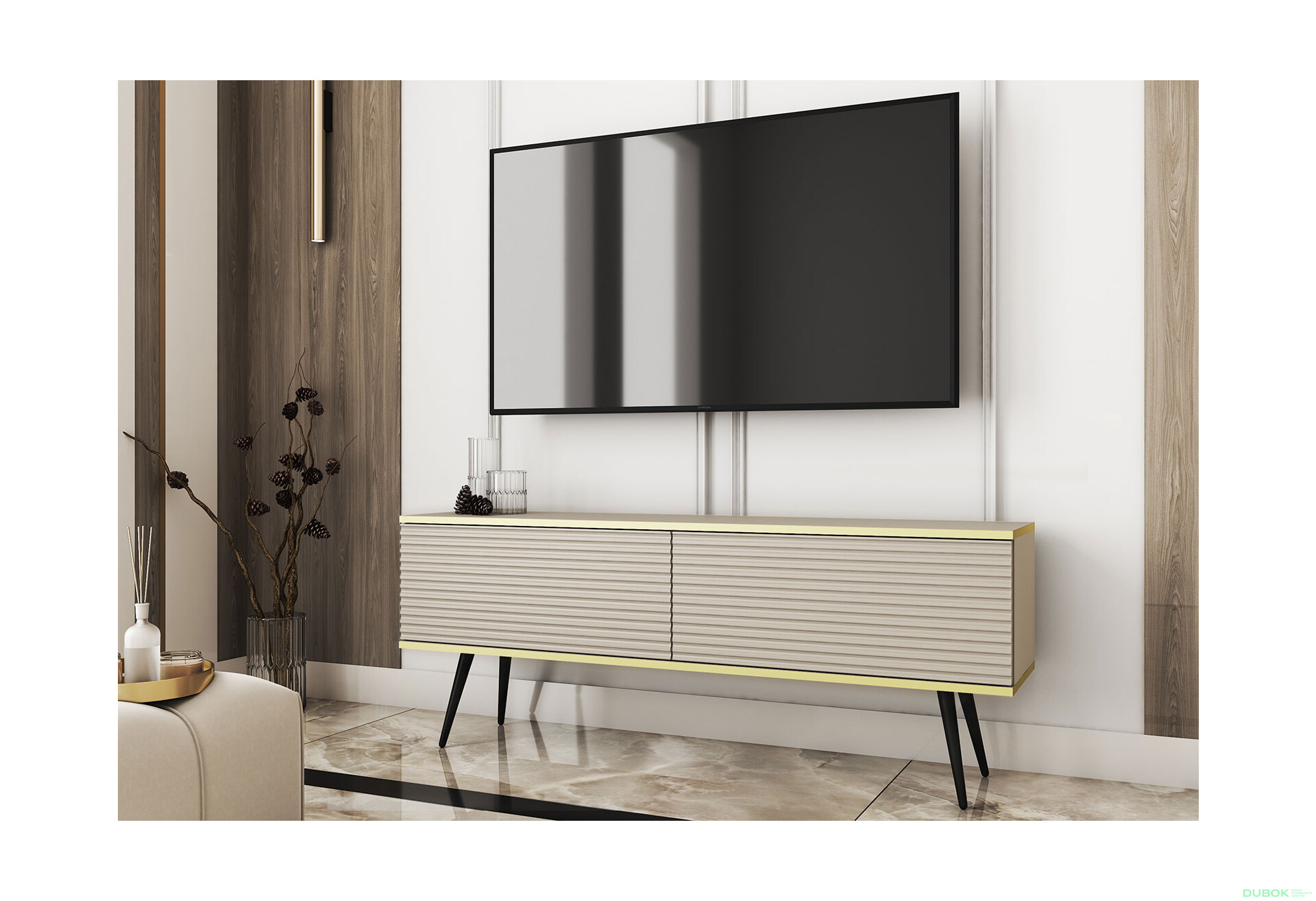 - TV stolík RTV 135 MDF béžový Oro, 1 ks – 135.00 cm x 30.00 cm x 32.00 cm