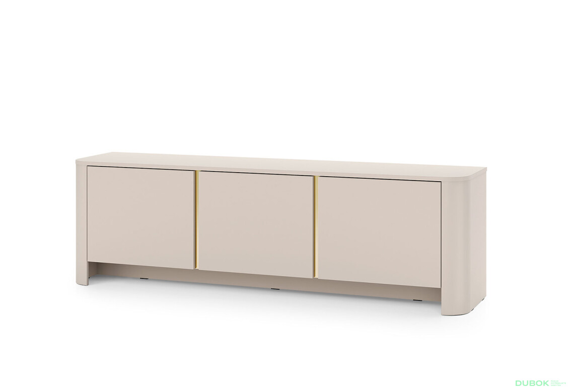 TV stolík RTV 168 kašmír Bari je moderný a funkčný kus nábytku, ktorý skvele zapadne do každej obývacej izby. S rozmermi 168 cm na šírku, 52 cm na výšku a 39 cm na hĺbku ponúka dostatok priestoru pre vašu televíziu a ďalšie elektronické zariadenia. Jeho elegantný dekor kašmír dodáva priestoru príjemnú atmosféru a súčasne zabezpečuje praktickosť s úložným priestorom za dvierkami. Tento voľne stojaci stolík je vyrobený z kvalitných materiálov, ako sú MDF a drevotrieska, pričom laminovaná povrchová úprava zaručuje jeho odolnosť a jednoduchú údržbu. Navyše, praktická úchytka typu push to open umožňuje jednoduché otváranie dvierok bez zbytočných úkonov. Ak hľadáte kombináciu moderného dizajnu a funkčnosti, tento stolík je pre vás ideálnou voľbou.