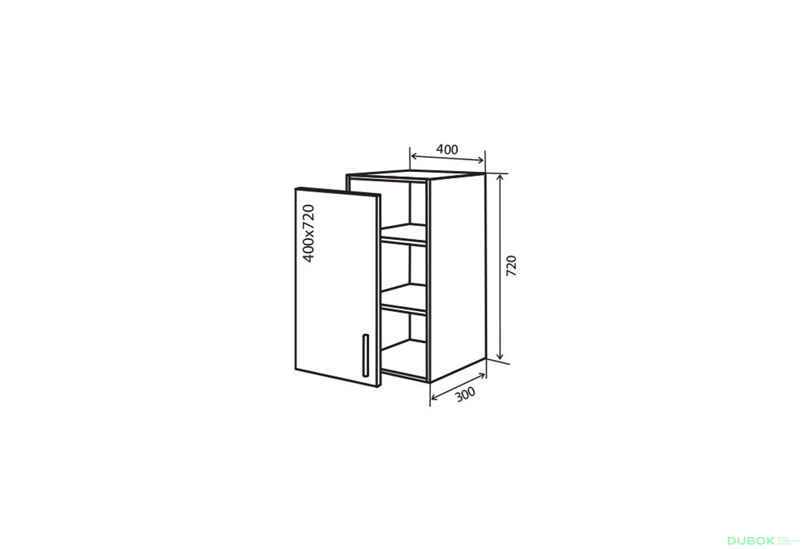 - Veľkosť. Skrinka má ideálne rozmery 40.00 cm na šírku, 72.00 cm na výšku a 30.00 cm na hĺbku, čo z nej robí praktický doplnok do každej kuchyne.