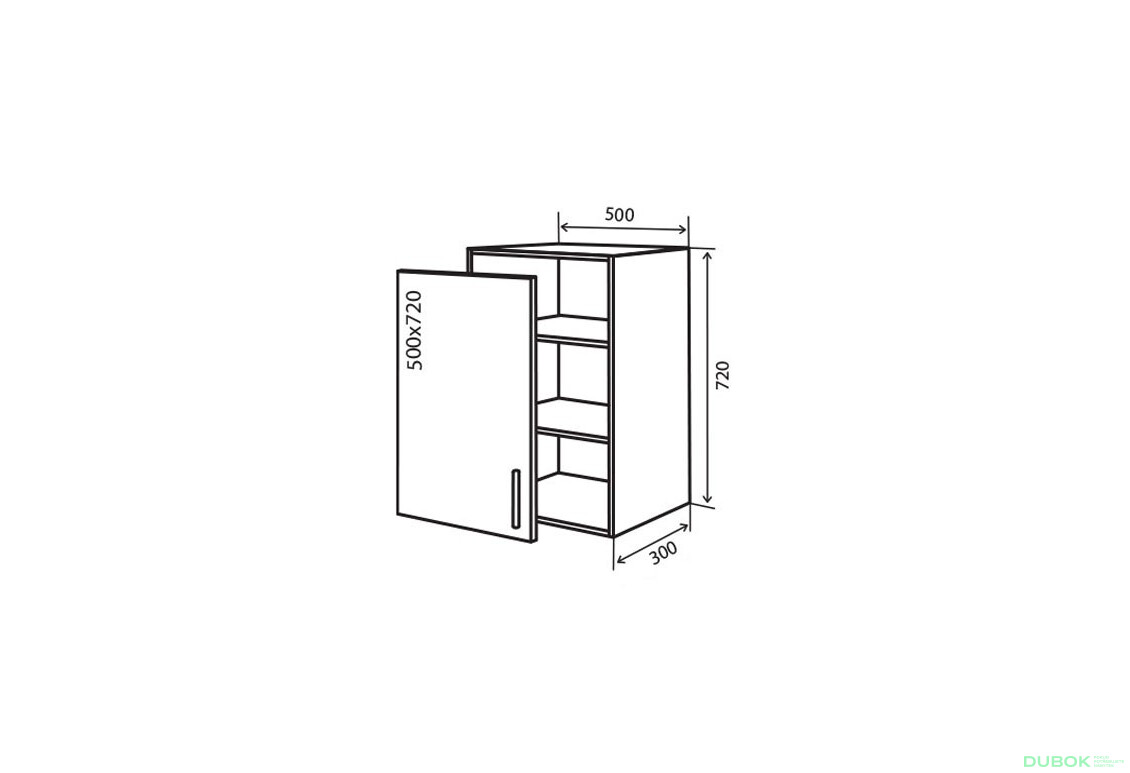 - Veľkosť. Skrinka má ideálne rozmery 50 cm na šírku, 72 cm na výšku a 30 cm na hĺbku, čo ju robí vhodnou do rôznych typov kuchýň.