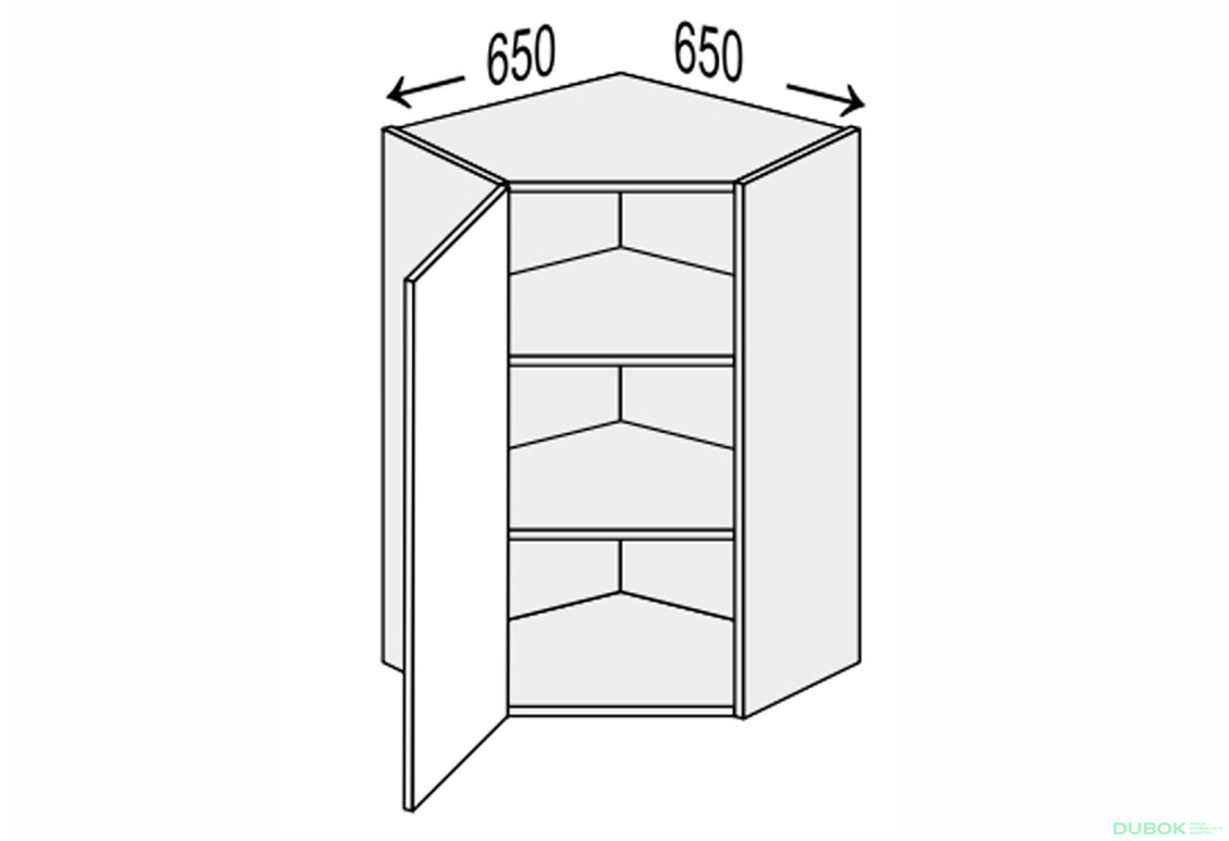 - Korpus Rohový B 45° 1dverový 650x650 900mm, 1 ks – 65.00 cm x 90.00 cm x 65.00 cm.