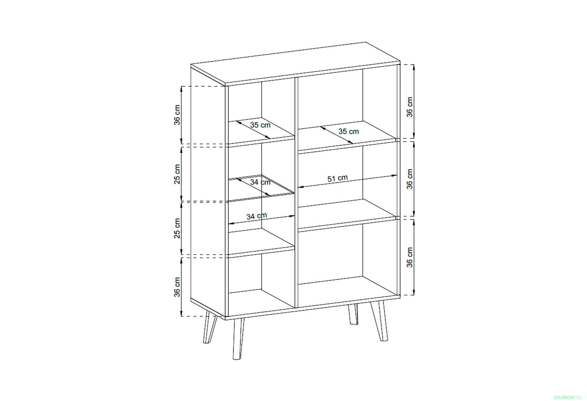 - Drevené nohy. Stabilita a podpora, ktorú poskytujú drevené nohy, zaručuje bezpečné umiestnenie vitríny.