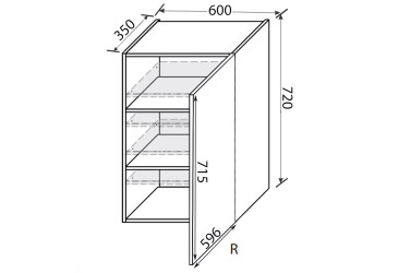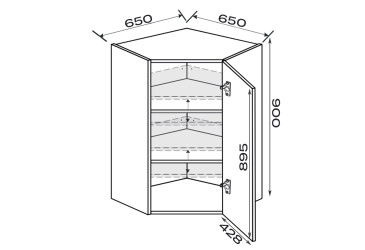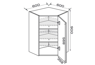 - Korpus Roh B 45° 1 dvere 600x600 360 mm, 1 ks – 60.00 cm x 36.00 cm x 60.00 cm.