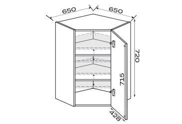 Vrchný roh V 45°/360 1 dvere ľavý Millenium je dostupný v rôznych modifikáciách, ktoré vám umožňujú prispôsobiť si kuchyňu podľa vlastných predstáv: