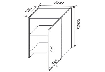 - Korpus Roh B 45° 1 dvere 600x600 360 mm, 1 ks – 60.00 cm x 36.00 cm x 60.00 cm