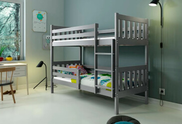 - super-cena, 80x190 cm, 3 miesta na spanie, drevo, lakovaná, grafit, bez úložného priestoru, s roštom, drevo.