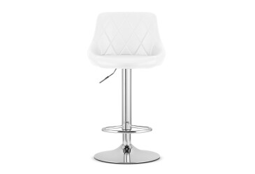 - barové, čalúnenie, bez podrúčok, biela / kov chróm, koženka, zdvíhací-otočný mechanizmus, 120 kg, moderný štýl.