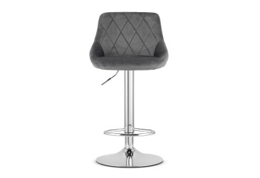 - barové, čalúnenie, bez podrúčok, šedá / kov chróm, zamat, zdvíhací-otočný mechanizmus, 120 kg, moderný štýl.
